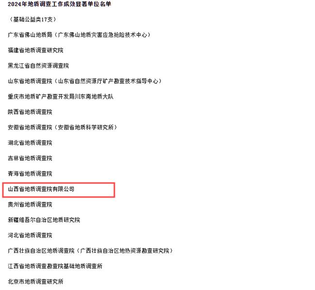 近日,自然資源部中國(guó)地質(zhì)調(diào)查局印發(fā)通知,對(duì)2024年地質(zhì)調(diào)查工作成效顯著單位予以通報(bào)表?yè)P(yáng)。山西省地質(zhì)調(diào)查院有限公司作為山西省唯一一家入選單位,憑借著傳統(tǒng)專(zhuān)業(yè)技術(shù)優(yōu)勢(shì),及在基礎(chǔ)性、公益性地質(zhì)調(diào)查和戰(zhàn)略性礦產(chǎn)勘查評(píng)價(jià)方面的顯著成績(jī),名列基礎(chǔ)公益類(lèi)2024年地質(zhì)調(diào)查工作成效顯著單位。這項(xiàng)榮譽(yù)是對(duì)我公司地質(zhì)工作的充分肯定和莫大鼓舞!