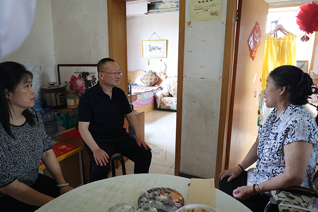 在老黨員張亮瑜家中,李?lèi)?ài)民與她促膝談心,關(guān)切詢(xún)問(wèn)身體近況和日常生活情況,詳細(xì)了解她多年來(lái)的地質(zhì)工作經(jīng)歷。在困難黨員張繼忠家中,李?lèi)?ài)民仔細(xì)詢(xún)問(wèn)家庭狀況和身體狀況,表示公司黨委將切實(shí)做好困難黨員幫扶工作,及時(shí)解決生活難題。