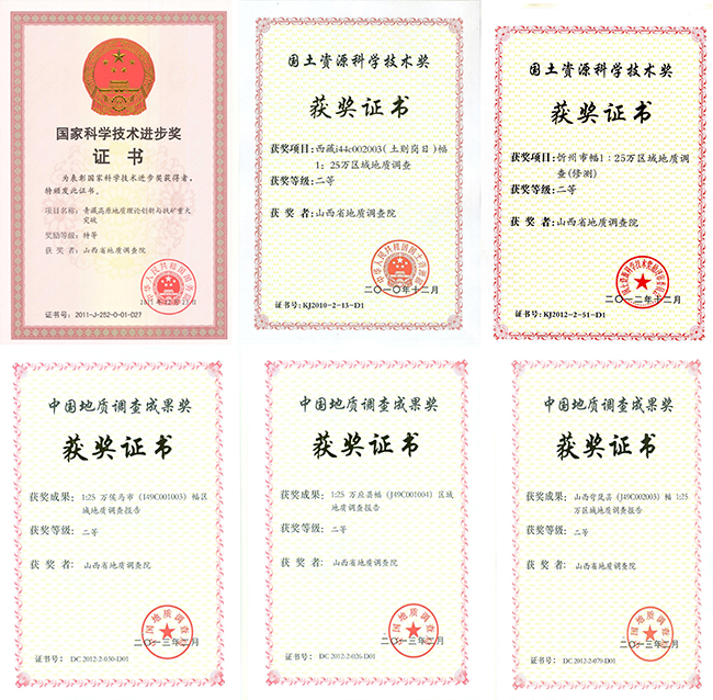 研究院始終堅持“質(zhì)量第一,誠信為本,勇于創(chuàng)新”的宗旨,原始資料及成果報告優(yōu)良率100%,優(yōu)秀率達(dá)75%。完成的西藏1∶25萬土則崗日幅、山西1∶25萬忻州市幅區(qū)域地質(zhì)調(diào)查獲國土資源部科學(xué)技術(shù)二等獎;在全國優(yōu)秀圖幅展評中1∶25萬忻州市幅獲一等獎,1∶25萬托和平錯、應(yīng)縣幅及1∶5萬御棗口幅獲二等獎,1∶25萬岢嵐縣幅、臨汾市幅、侯馬市幅等6個項目獲三等獎,其中1∶25萬、應(yīng)縣幅、岢嵐縣幅、侯馬市幅獲中國地質(zhì)調(diào)查成果二等獎。