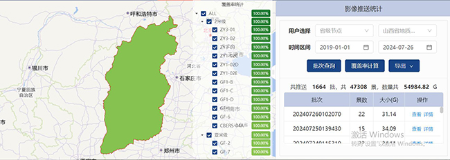 截止到2024年7月26日,山西省地質(zhì)調(diào)查院有限公司作為省級節(jié)點(diǎn)單位累計接收1664批,共47308景影像數(shù)據(jù),數(shù)據(jù)量53.69TB。